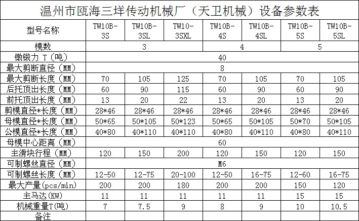 您當(dāng)前的位置:首頁 / 產(chǎn)品中心 / 四模四沖冷鐓機 / └ TW10B(M6)多工位冷鐓機 / 四模四沖TW10B