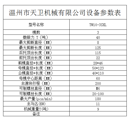 您當(dāng)前的位置:首頁 / 產(chǎn)品中心 / 三模三沖冷鐓機 / └ TW10B(M6)全自動多工位冷鐓機 / TW10B-3SXL全自動多工位冷鐓機